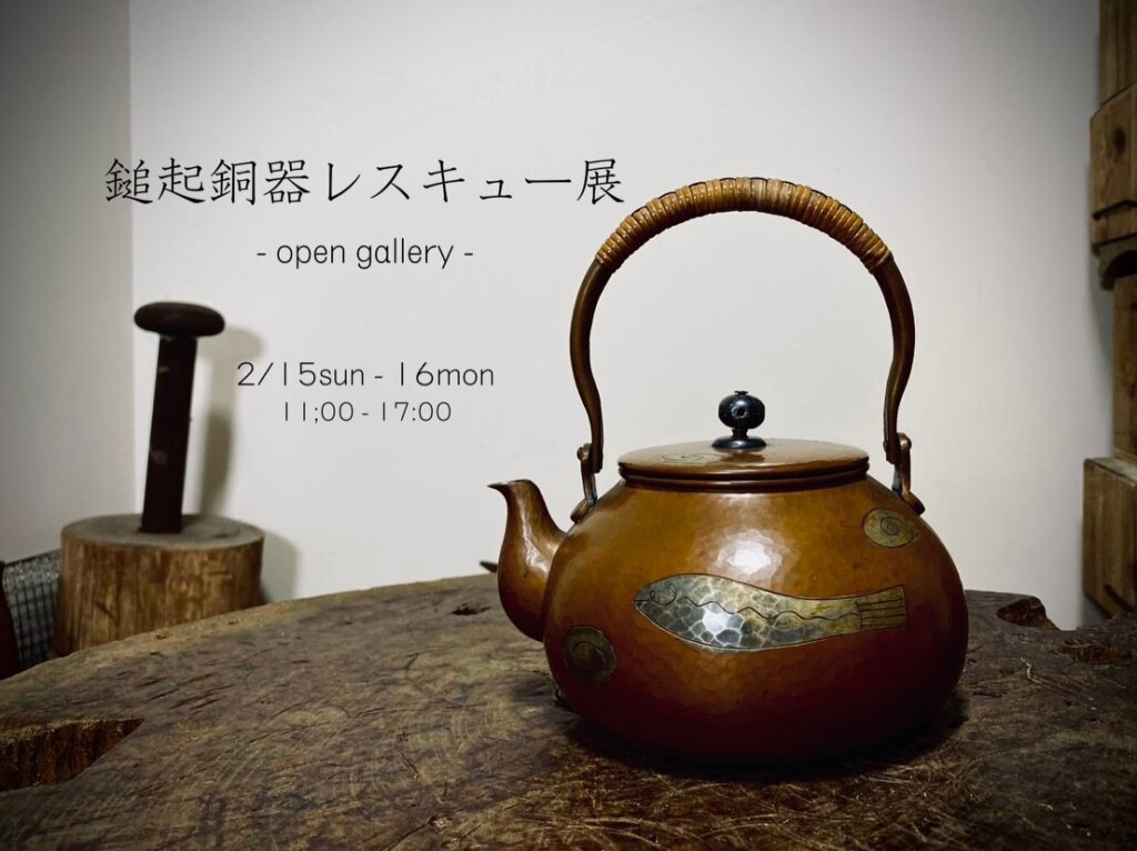 2月15日日曜16日月曜『鎚起銅器レスキュー展』をさせていただきます。